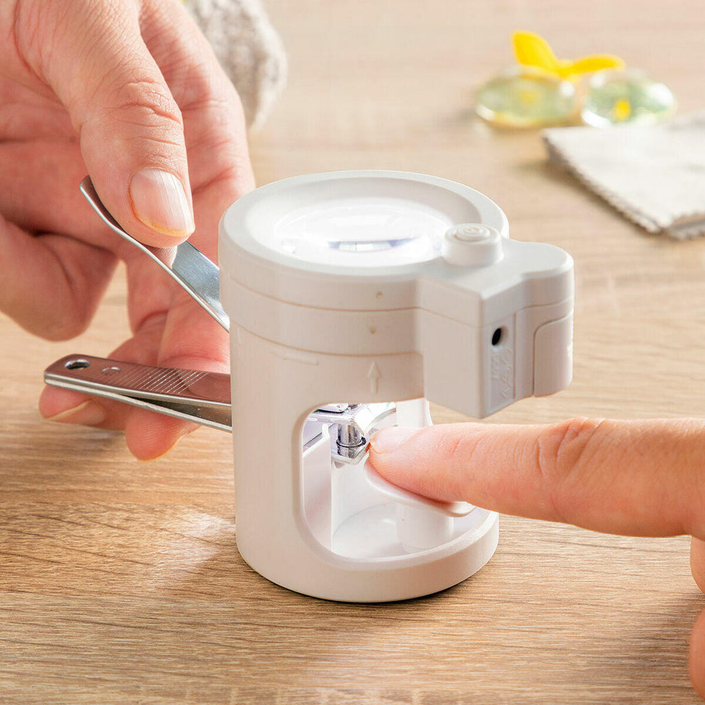 Un cortaúñas con lupa, luz y lima que mejora la visualización de las uñas para cortarlas con mayor precisión, logrando un resultado profesional. Ideal para personas mayores y niños.